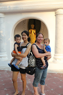 My uncle took us to a temple near the house on one of our first days. Obviously, everyone knows I am Christian and my beliefs are completely different from Buddhist, but I do think it is important for my kids to see things like this and I believe it is such a good learning experience. And quite honestly, temples look really cool. We watched as everyone put incense in and bowed to Buddha. It was hard for me to explain to Samantha what they were doing, but I did the best I could. And while most Thais are Buddhist, it was never expected of us to participate in anything at the temple.